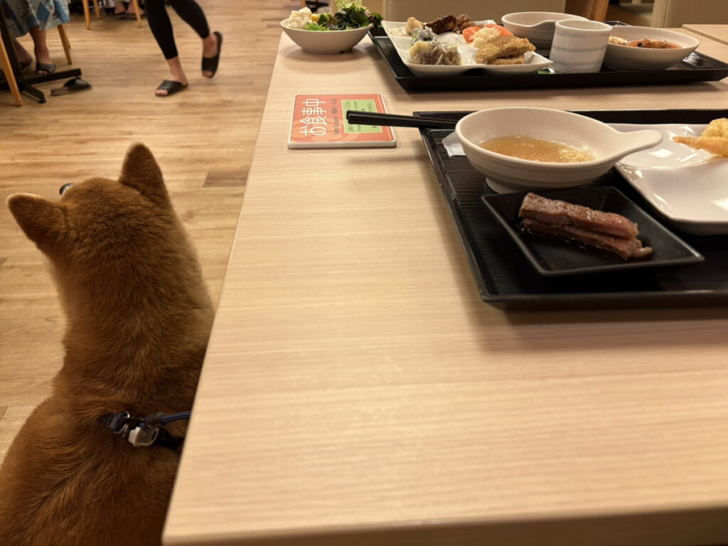 朝夕バイキングで人気の大江戸温泉だから、愛犬と一緒にバイキング会場で食事を楽しめるんですよ。