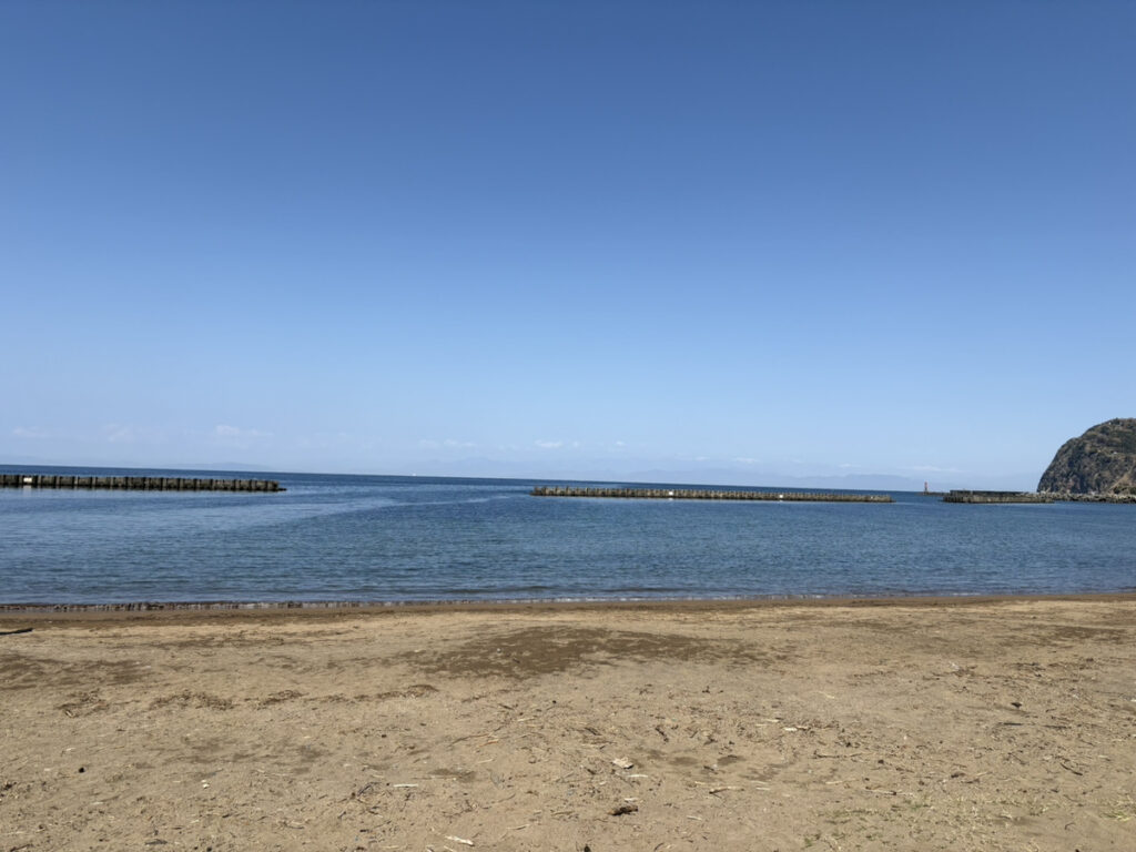 大江戸温泉物語わんわんリゾート西伊豆の目の前には、海が広がっていて、そのまま砂浜をお散歩することができます。