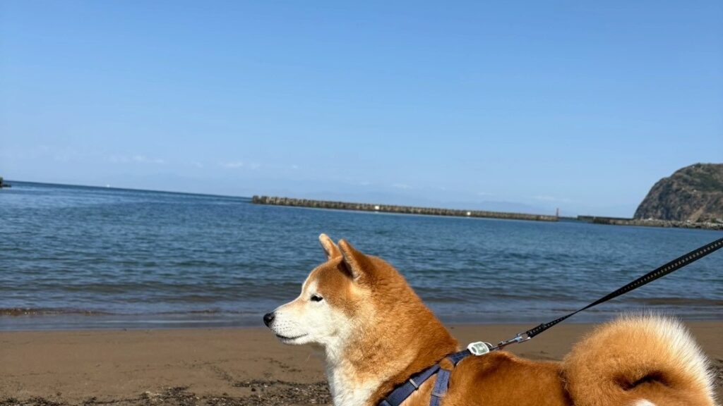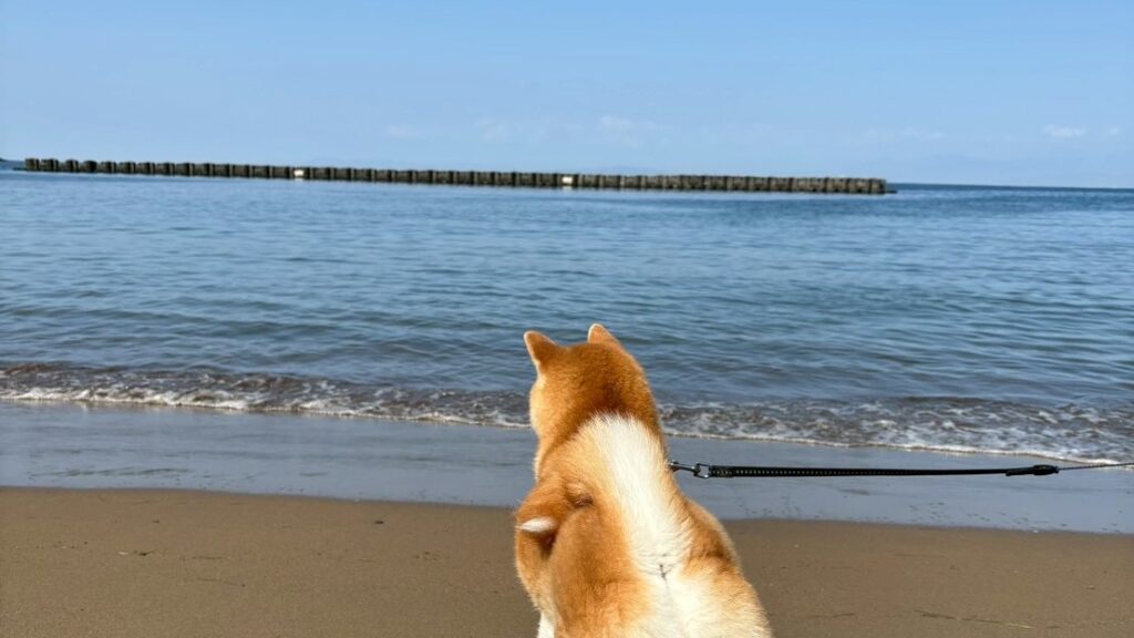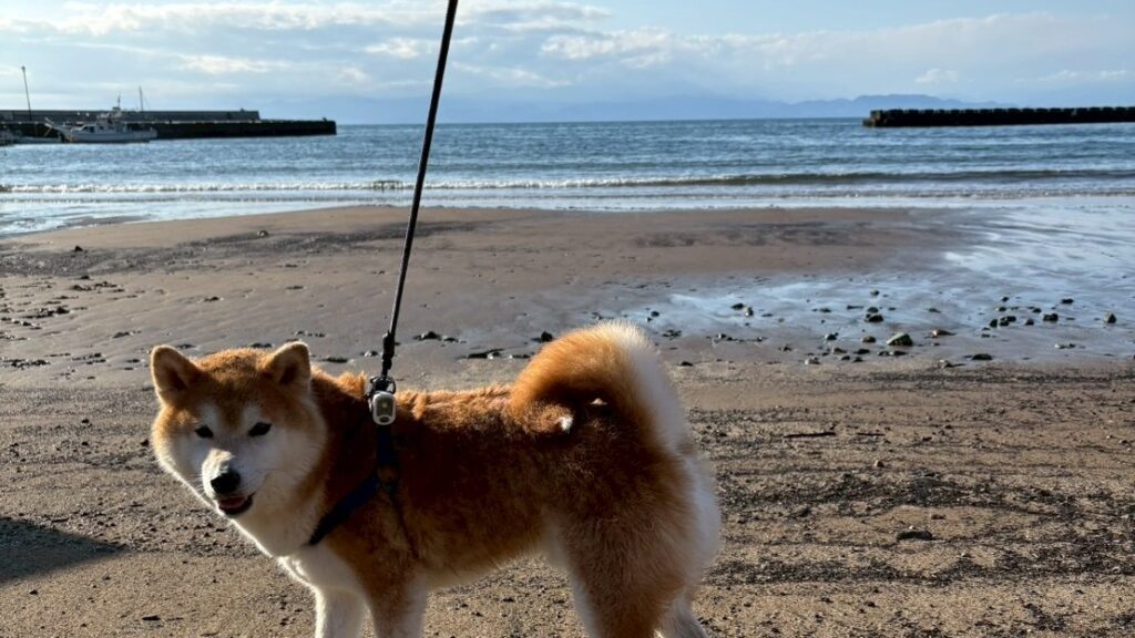 我が家の柴犬も、砂浜をのんびり歩きながら、思いきり散歩を楽しんでいました。